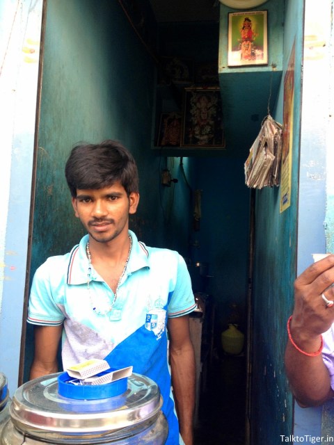 “This is a 4 ft * 12 ft shop. I work for 12-14 hours every day and sell about 800-1000 cups of tea everyday and equal amount of cigarettes. As the space is small I cannot sit down or rest comfortably in this shop but I make a decent amount of money after paying 8000₹ rent and some payouts to local powers. I am happy that I am working for myself and have full freedom. I am saving up for my sister’s wedding.“